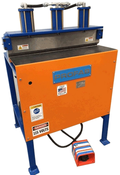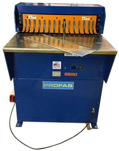 This machine provides any shop with a complete work center for fabrication fittings. One side of the dual purpose bending die bends (approx. 7/16in), and punches the cheeks for Button Punch Snap Lock 90-degree fittings. Flip the die over and you have a 20 gauge Power Cheek Bender for making right-angle flanges for Pittsburgh fittings. Step gauge built into the die allows for 1/4in and 3/8in 90 degree bend.